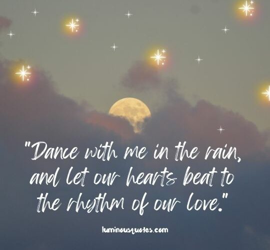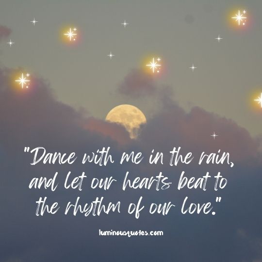 - “Dance with me in the rain, and let our hearts beat to the rhythm of our love.”