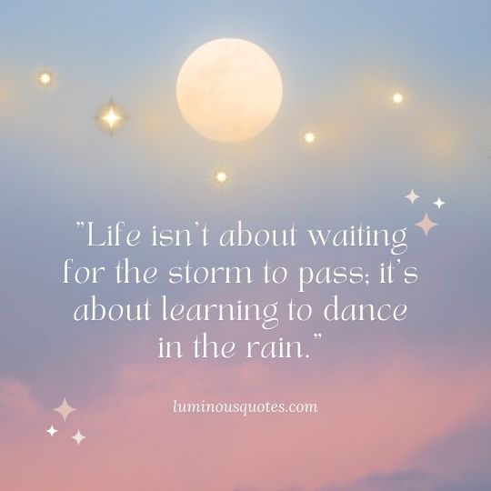 - “Life isn’t about waiting for the storm to pass; it’s about learning to dance in the rain.”
