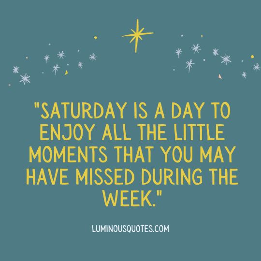 • “Saturday is a day to enjoy all the little moments that you may have missed during the week.”
