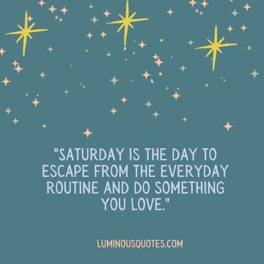 • “Saturday is the day to escape from the everyday routine and do something you love.”