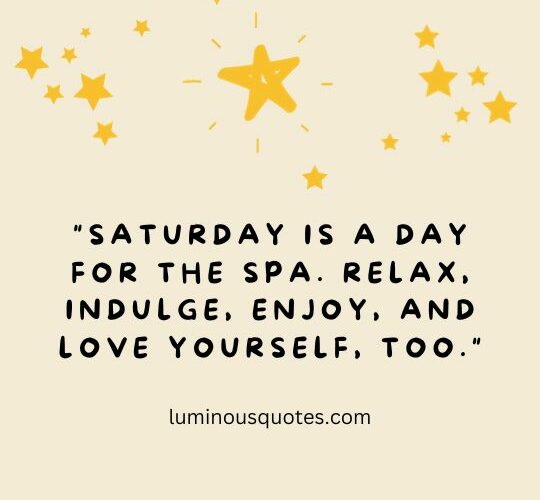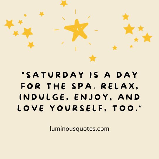 • “Saturday is a day for the spa. Relax, indulge, enjoy, and love yourself, too.”